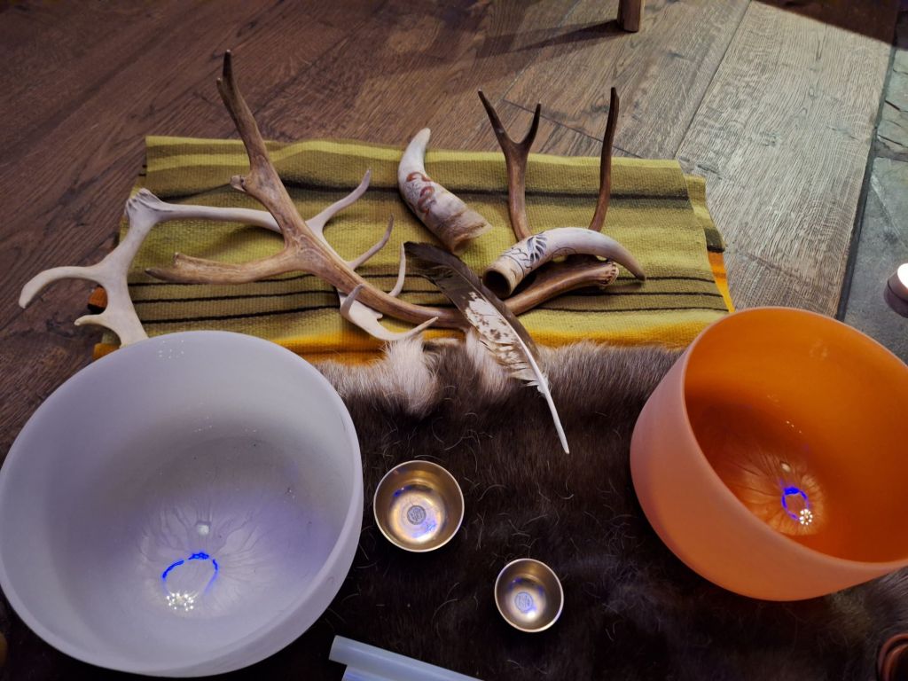 Äänimaljoina meillä on käytettävänä kristalliset äänimaljat, sekä käsintaotut metalliset maljat. Lisäksi gongi, rumpu ja Koshikellot kuuluvat perusrepertuaariin.